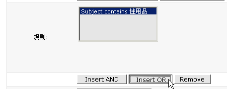 5> 由于還要同時拒絕含有"情趣用品"標題的郵件,因此點擊"insert Or"